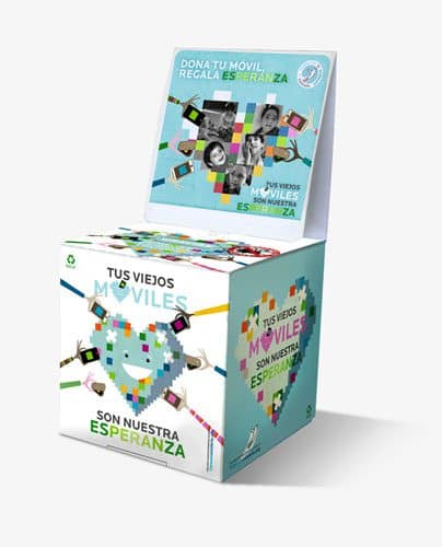 Hemos diseñado y puesto en marcha un sistema de recolección basado en unas pequeñas cajas de cartón autoprecintables en las que particulares, comercios, empresas e instituciones, pueden depositar sus viejos teléfonos móviles y colaborar con esta magnífica iniciativa.